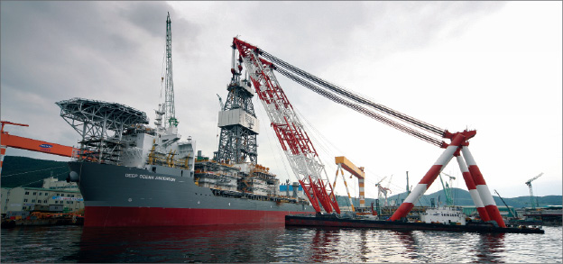 The company also has invested in four ultra-deepwater newbuild drillships, under construction at the Samsung shipyard in South Korea. The Deep Ocean Ascension, Deep Ocean Clarion, Deep Ocean Mendocino and Deep Ocean Molokai will be able to drill in water depths of 10,000 ft to 12,000 ft and drill wells up to 40,000 ft. All will be dynamically positioned.