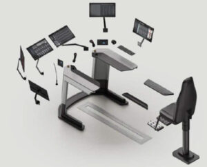 The dynamic physical workspace focuses more on ergonomic design. It emphasizes flexible work postures during long shifts, with a setup that separates controls, armrest and screens from the chair. This allows drillers to alternate between sitting and standing. Screens are arranged and mounted on flexible arms on a workstation and placed low enough to ensure a clear view of the drill floor and the redzone.