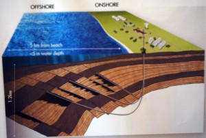 Instead, Shell opted to drill “fishhook” wells beneath the structure that curve back up toward the surface and into the formations. The wells were drilled from shore and reached some 5 km from shore in water depths less than 5 meters. Maximum well depth at the bottom of the “hook” ranged from 1,200 meters to 1,700 meters, Mr Dada said.
