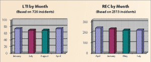 •By equipment, it was the “other” category that was responsible for the most LTIs and recordables.