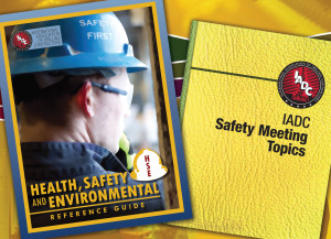 • The IADC Health, Safety and Environmental Reference Guide has been reformatted and redesigned. The book is scheduled to be published in Q1 2013. Containing all the necessary guidelines for establishing a sound safety program, the book covers topics such as equipment safety, personal protective equipment, fire prevention, fire fighting and fire control, confined space entry guidelines, cold weather safety, offshore safety and emergency action plans, among others.