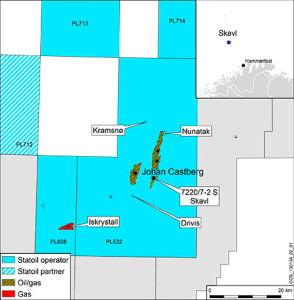 Statoil, with partners Eni Norge and Petoro, made an oil and gas discovery in the Skavl prospect in PL532, close to the Johan Castberg area in the Norwegian Barents Sea, approximately 149 miles (240 km) from Hammerfest.