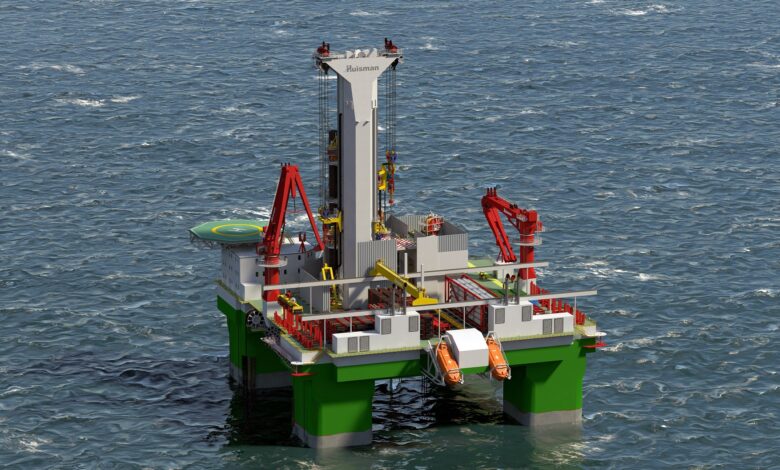 Huisman has unveiled a proposal for a new harsh-environment semisubmersible that can be powered by onshore-produced hydroelectricity, via a power cable from a nearby platform. Alternatively, it can be powered by two floating wind turbines, which would be moored next to the rig. Huisman called the two solutions “radical but realistic.”