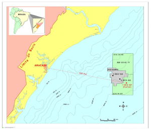 The well is 109 km from the municipality of Aracaju and 21 km southeast of the Barra accumulation, where well 1-BRSA-851-SES (1-SES-158 – Barra) was drilled, which revealed the first significant gas discovery in ultra-deep waters of the Sergipe-Alagoas Basin.