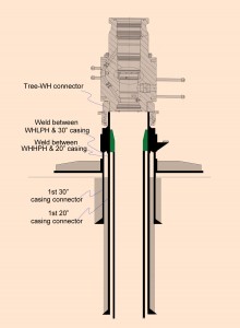• Weld at the bottom of the low-pressure housing connecting to the structural casing (typically 36- or 30- in. outer diameter, OD);