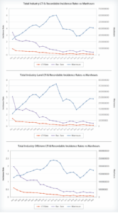 Canada’s onshore segment worked 9.2 million manhours, with the LTI rate just slightly improved from 0.27 to 0.26. Its recordable rate saw more improvement, however, going from 1.40 to 0.84.