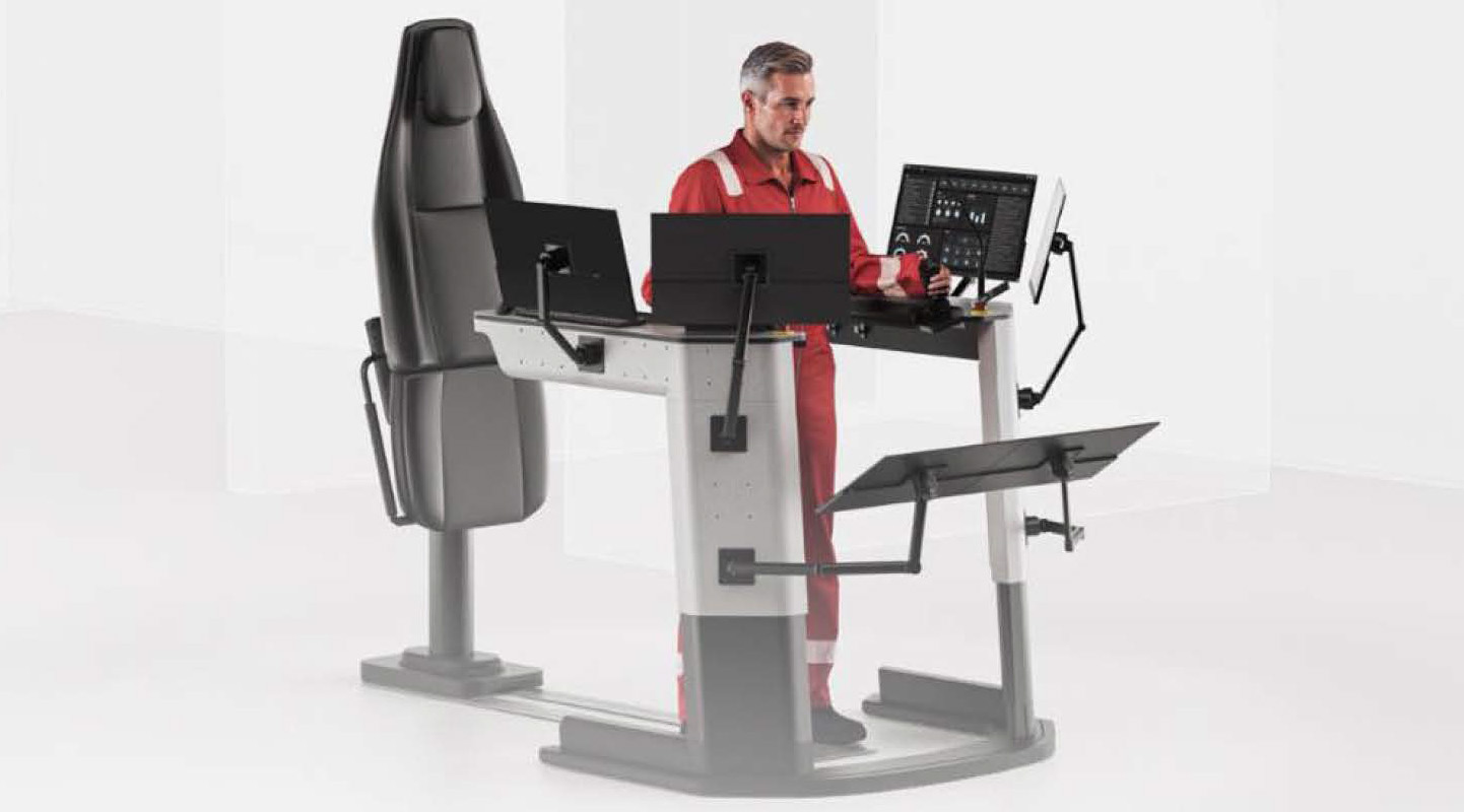 The dynamic physical workspace focuses more on ergonomic design. It emphasizes flexible work postures during long shifts, with a setup that separates controls, armrest and screens from the chair. This allows drillers to alternate between sitting and standing. Screens are arranged and mounted on flexible arms on a workstation and placed low enough to ensure a clear view of the drill floor and the redzone.