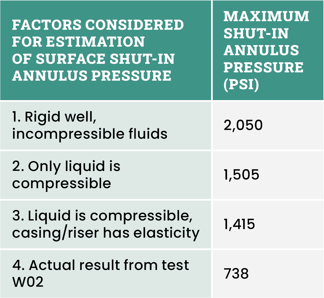 It is crucial to isolate and quantify the individual factors contributing to shut-in pressures being lower than typically expected. Four distinct cases were identified, with their estimated surface pressures presented in Table 1. These calculations consider a 5-bbl nitrogen gas influx migrating from the bottom of a water-filled riser annulus under shut-in conditions.