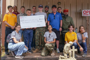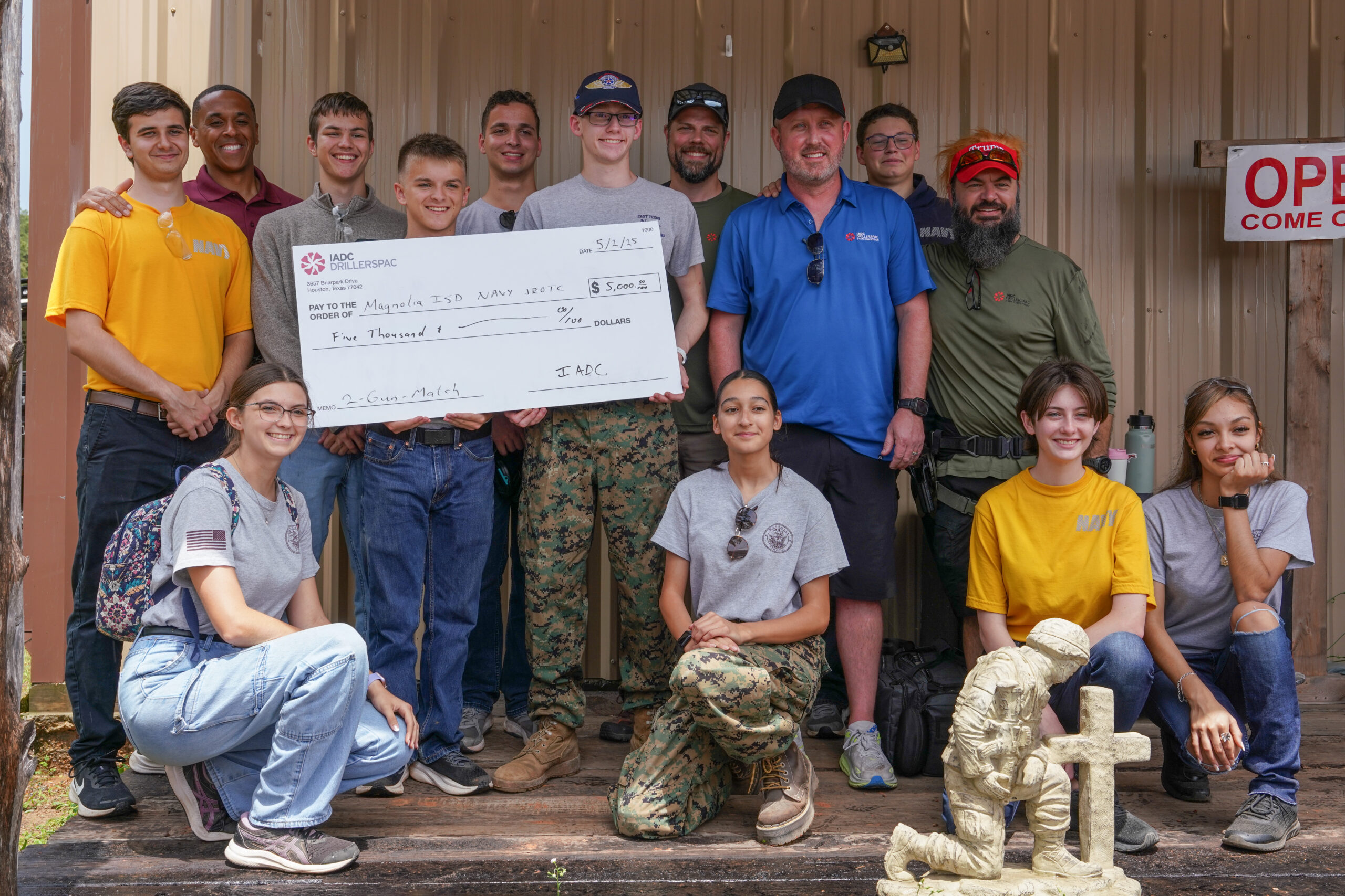 Students from the Magnolia Independent School District’s Navy JROTC Program receiving a check from the IADC DrillersPAC during the 2-Gun Match in May.