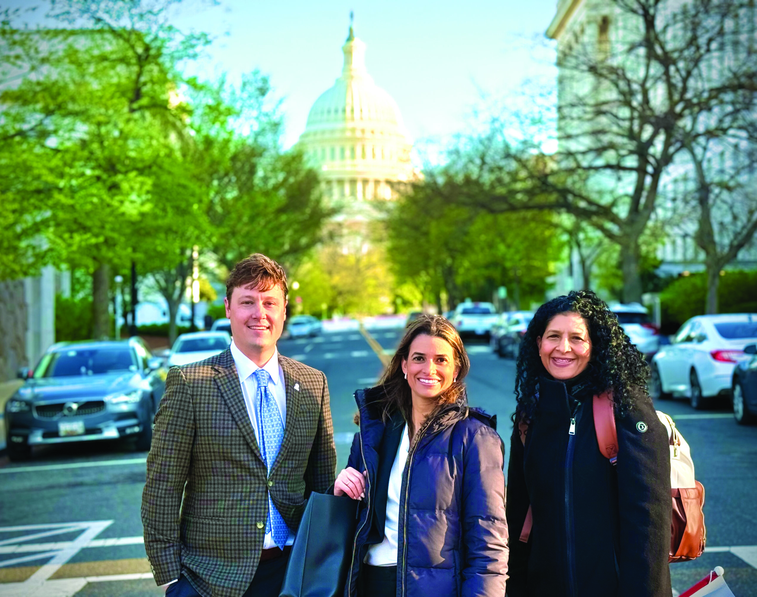 IADC members, pictured from left, John Norton, Isabela Bueno Louback and Sangeeta Karle in front of the US Capitol during the IADC Spring Fly-In to Washington, DC.