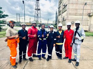 The IADC Petroleum Training Institute Student Chapter in Nigeria visiting a drilling rig and flow station.