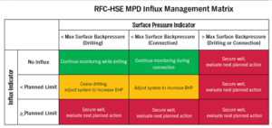 The availability of MPD-capable offshore drilling units is on the rise. The RFC-HSE variant of MPD is best suited for wells designed with open-to-atmosphere drilling systems. RFC-HSE MPD is intended not only to detect influx but also to apply SBP as needed to stop influx and minimize the influx size before the well is shut in. The RFC-HSE influx management matrix defines the maximum SBP that can be applied while the well is shut in. This effectively increases operational safety and protects personnel and assets.