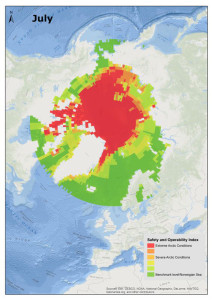 As a result, the consequences of an accident in the Arctic would likely be more severe in some areas than others. The map is a useful tool to identify regions that require special attention when it comes to planning activities and for imposing mitigation measures throughout the year. The map can also provide input to decisions makers about restricting certain types of activities in specific areas at different times of the year.