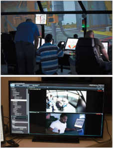 As students complete exercises in the simulator, both technical and human factors instructors are present in a connected room to observe the students’ interactions. In order to add realism to the simulator exercises, instructors intentionally throw curve balls – such as incorrect instructions or radio failures – at the students. When the exercise concludes, students go through a debriefing from both a technical and a human factors perspective.