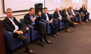 The IADC Drilling Engineers Committee tackled the hot topic of data during its Q3 Technology Forum on 25 September. Panelists included (from left): Corey Thompson, Pacific Drilling; George Buck, Chevron; Alex Groh, Patterson-UTI Energy; Andy Hawthorn, Baker Hughes; Harris Swartz, Oxy; Scott Coffey, Nabors Drilling Technologies; and moderator Michael Edwards, BP.