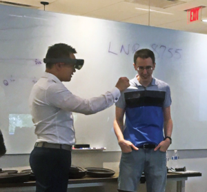 An augmented reality company let members of the IADC Maintenance Committee experience the technology during the committee’s meeting in April. Pictured are Vantage Drilling’s Andy Poosuthasee (left) and Chris Underwood with Smart Group.