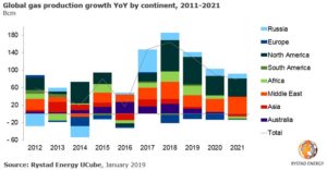 Rystad Energy: Global gas production achieved highest growth in a decade in 2018