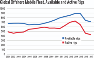 For offshore rig markets, the cyclical bottom is still ahead. Global demand dropped by 7% from 2016 levels to an average of 429 units, and marketed utilization at the time of the census was 60%, well below normal levels in the 70% to 80% range. The inflection point for offshore rigs is expected to happen in the next few quarters as demand improves and rig retirements accelerate in an effort from rig owners to rebalance the market.