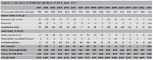 In aggregate, the available global offshore drilling fleet saw a net reduction of 30 rigs to a total of 710 rigs, and 429 units were active during the 45-day census period (Table 3).