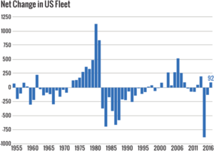 Offshore, most drillers are opting to make arrangements to reschedule deliveries for future dates when market conditions are expected to be more favorable. This year, additions (newbuilds and reactivations) were able to offset the 73 deletions to the fleet mentioned previously, resulting in a net increase in the size of the US fleet for the first time since 2014 (Table 1).