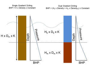 There are complications with this approach, however. “When drilling in dual-gradient mode, it is possible to extend the open-hole sections and drill past a ‘point of no return,’ where conventional well control methods cannot be used anymore,” explained John H. Cohen, Technology Manager for Enhanced Drilling, developer of the Riserless Mud Recovery (RMR) technology and the EC-Drill managed pressure drilling (MPD) system. “This is because the wellbore can no longer support a column of the heavier-than-conventional DGD fluid back to the surface, a phenomenon that can cause the formation to fracture.”