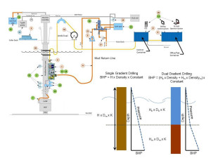 Rather than using two liquid gradients, this approach controls the pressures in the wellbore using gas in the top of the riser and a heavier-than-conventional mud in the well to manage the downhole pressures. The system is an outgrowth of RMR, or a pre-BOP DGD system, meaning it is placed on the well before the BOP is used, Mr Cohen explained.