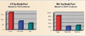 • Fingers remain the most vulnerable part of the body and the most likely to be injured.