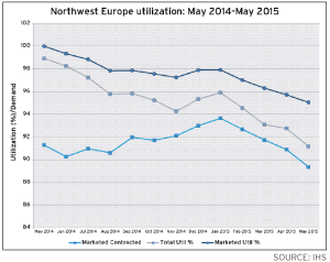 Total utilization for North Sea jackups dropped from 100% in June 2014 to 87% in June 2015.
