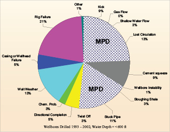 Oil companies spend millions of dollars every year attempting to manage and mitigate drilling hazards via traditional technologies that can be ineffective. The three CPD techniques – AD, UBD and MPD – can be used to address some of these hazards; however, MPD is the most appropriate to mitigate the majority of them because of the balanced approach and focus of the technique. CPD can address unscheduled events, drilling hazards and conventional drilling NPT along with invisible lost time (ILT) while MPD can help with wellbore instability. Unscheduled events that CPD can reduce or eliminate can be further classified as recordable NPT and ILT caused by weighted mud (Figure 2).