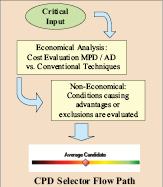 The MPD expert screening system incorporates economic and time analysis and fuzzy logic. Algorithms and fuzzy logic rules are used to handle situations when a factor is not strictly true or false. It allows partial truth and assigns a value to this factor through a mathematical evaluation of the trueness. The applicability of MPD depends on: