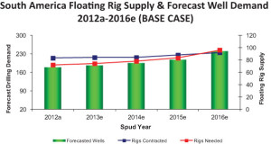 According to a report by Quest Offshore Resources, in 2012 South America contracted 83 rigs but needed only 72. However, it is expected that by 2016, 92 rigs will be contracted when the region will need 96 rigs. It also forecasted that well demand will increase every year.