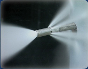 nozzle forward into the formation. The overall nozzle diameter typically varies from 0.5 in. to 0.75 in. and is approximately an inch long.
