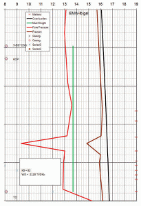 An analysis of the expected ECDs for the proposed well by Halliburton’s DFG hydraulics software indicated that the given fracture gradient would be exceeded by a significant margin without the use of a low-ECD fluid. This same hydraulics model was used to determine the maximum allowable fluid rheology required to remain within the safe operating window.