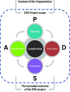 The EEE project follows the Plan-Do-Check-Act (PDSA) continual improvement framework, also outlined in ISO 5001, where: