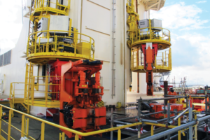 Huisman also recently launched a wide-range power slip, which can grip pipe from 3 ½ in. to 9 ¾ in.-OD without changing inserts. “Further, the unit can open to 21 inches, which creates a lot of space for letting large elements, such as bits and stabilizers, to pass through the slips,” Mr Wijning said. A second clamp is present, which enables quick changes from drill pipe to casing or can serve as a backup for the first clamp. “According to oil companies we have talked to, this clamp alone can save 2-3% or maybe even 4% of the total well construction time,” he said.