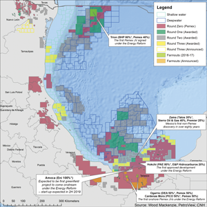 On 18 July, Mexico’s National Hydro-carbons Commission (CNH) announced it had moved bidding rounds 3.2 and 3.3 and seven farm-outs with PEMEX from the original date of 5 September this year to 14 February 2019. The change came at the request of Mexico’s Ministry of Finance, which was seeking more time to finalize contract terms and to give companies more time to analyze the associated data, according to Óscar Roldán, Head of CNH’s National Data Repository. “It also gives CNH a chance to work hand-in-hand with the federal government’s transition team to review current contracts and adjust future contract terms,” he added.