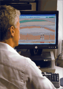 The 24/7 geosteering process begins at the kick-off point, when the well starts to go directional, all the way to the end of the lateral. “Landing is extremely important,” he continued. “We geosteer the landing curve so directional drillers can land the well at the right place. Then we help them geosteer the lateral while they’re drilling horizontally to help them stay in the zone and maximize production. We are monitoring every foot that is drilled on our computers in real time, logging the data in our database and processing it to geosteer the well within the target zone for our clients.”