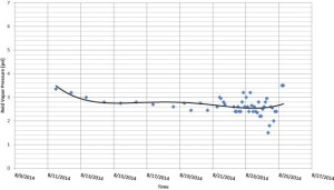 The in-field RVP circulation system was tested prior to live operation by using a pump to circulate the native crude in efforts to reduce fluid volatility. As shown in Figure 2, an initial RVP value of 5.4 psi was recorded before pumping began. Within 24 hrs, the RVP decreased below 3.5 psi as expected. The rate at which the crude light ends flashed off was high initially and became more asymptotic over time. Testing was ended after 4 psi was sustained.