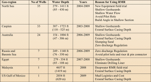 The shallow water version of RMR has been used commercially since 2003 on more than 100 wells worldwide. The most common reasons for using the system include: