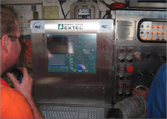 • The control system provides for operation of RMR from a panel on the rig floor during drilling operations (Figure 6). This panel is mounted in the driller’s cabin to facilitate communication between the driller and RMR operator. A redundant control panel and additional monitors are in the office and workshop container and used to monitor the health of the system during operations and is used to control the equipment on deck during rig-up and deployment.