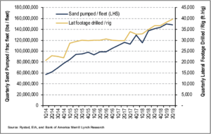 Overall year-on-year rig activity is forecast to decline by 8% versus 2019, but that’s because the rig count has already dropped by 200-plus rigs over the course of this year. “We’re forecasting an average horizontal rig count of about 762 for 2020, so that’s actually up just a little bit relative to where we are today at 749,” he said in late September. “So you’ll get back a handful of the rigs that were lost this year.”