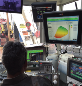 A driller uses the patented Drilling Advisory System, a key component of ExxonMobil’s Fast Drill technology, to improve drilling performance on the XTO Permian field.