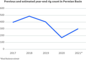 Another trend to look for this year is how much operators will reduce their drilled but uncompleted (DUC) wells inventory in the Permian. Operators had relied on a significant backlog of DUC wells to maintain production last year as drilling activity dropped. “We’ve seen DUC inventory start to come down the past few months as the prices have come back up,” Mr Barron noted. EIA numbers show total DUC inventory in the Permian was 3,163 as of February 2021, down from a peak of 3,715 in June 2020.