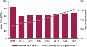 Douglas-Westwood is forecasting that, by the end of 2015, there will have been 200 fewer wells drilled offshore this year compared with 2014. For onshore, the forecast is down by nearly 25,000 wells. Further, the firm is projecting stagnant levels of activity into 2016 for both offshore and onshore, although the number of wells drilled may increase slightly in the latter part of 2016 as the gap between production and demand narrows.