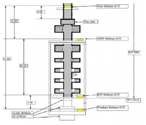 • The translation of rig motion to the riser, BOP and wellhead was monitored through use of an ROV-deployed digital inclinometer. The inclinometer is capable of monitoring any minute movement with a high degree of accuracy (+/- 0.05°). Conventional bull’s-eye readings can be subjective and cannot be used accurately to quantify dynamic changes in inclination (Figure 3);