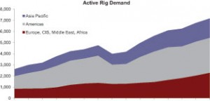 - Total drilling demand may push the number of operational drilling rigs in the global fleet over 9,000 by 2016, with 60% of demand coming from regions outside of North America.