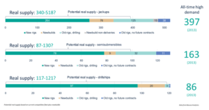As demand continues to be difficult to predict, supply forecasts now dominate investor presentations and analyst reports. If you can reasonably derive a low number for the number of competitive rigs in the market, then you don’t have to rely on demand as much to make your case for happier days.
