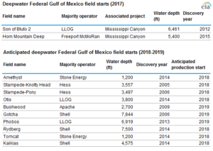 Based on STEO’s expected production levels at new fields and existing fields, annual crude oil production in the GOM will increase to an average of 1.7 million bbl/day in 2018 and 1.8 million bbl/day in 2019. However, uncertainties in oil markets may still affect long-term planning and operations in the GOM, and the timelines of future projects may change accordingly.
