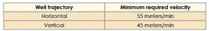 2. Minimum liquid flow velocities, which determine the cutting-carrying/hole-cleaning capacities. By experience, the values for minimum hole-cleaning capacities for water-based mud are: