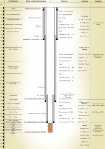 The Kirchweidach wells have the longest open-hole sections for geothermal wells, with GT 1 at 1,276 meters, GT 2 at 1,241 meters and GT 2a at 1,378 meters. They are also the only horizontal wells drilled in this formation. At the top of Malm, the separation between GT 1 and GT 2a is 1,600 meters. Figure 1 shows the typical well design, and Figure 2 shows the structural placement of the wells.